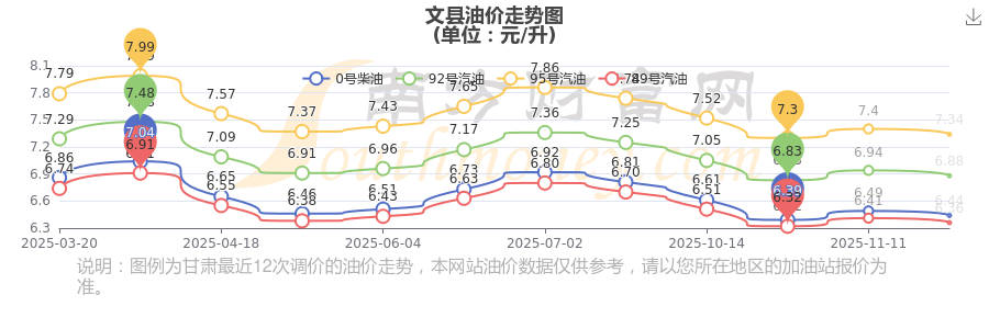 文縣12月7日95號汽油歷史油價(jià)調(diào)整走勢圖