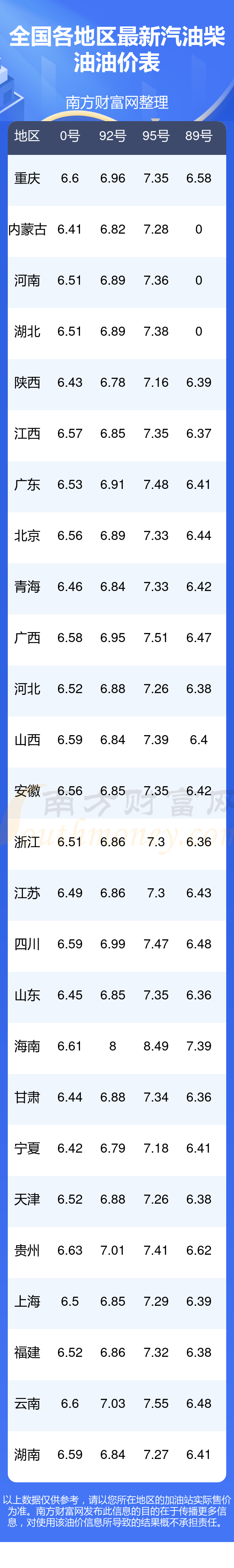 油價數據僅供參考,請以您所在地區的各加油站報價為準。