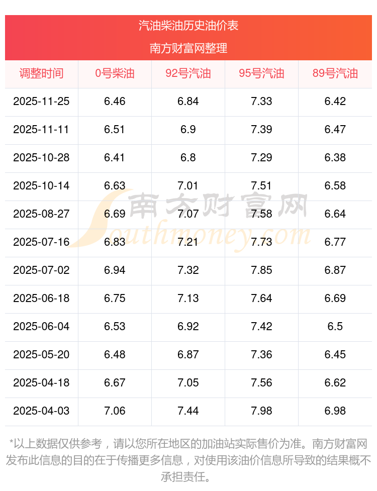 2025年汽油柴油油價(jià)調(diào)整一覽表