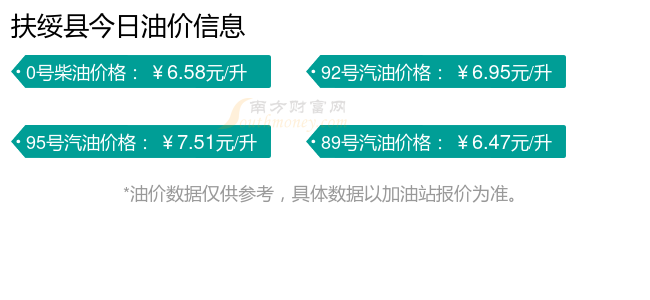 12月7日扶綏縣汽油柴油每升價格(11月25日調整后的價格):92號汽油為6.95元,跌了0.05元,跌幅達0.71%;95號汽油為7.51元,跌了0.06元,跌幅達0.79%;89號汽油為6.47元,跌了0.05元,跌幅達0.77%;0號柴油為6.58元,跌了0.06元,跌幅達0.9%。下一輪油價調整時間12月8日24時。