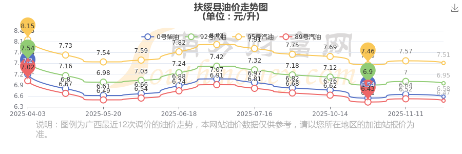 扶綏縣12月7日95號汽油歷史油價調整走勢圖