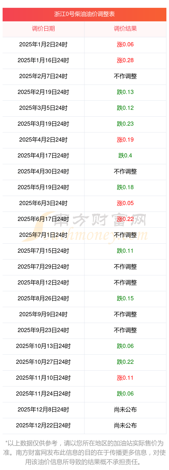 杭州汽油柴油12月7日的價格每升多少錢?具體為:92號汽油為6.86元,下跌了0.06元;95號汽油為7.3元,下跌了0.06元;89號汽油為6.36元,下跌了0.05元;0號柴油為6.51元,下跌了0.06元,本輪油價的調整時間為11月25日。