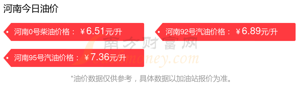 河南汽油、柴油12月7日每升最新價格為11月25日調(diào)整后的價格,92號汽油為6.89元,下跌了0.06元;95號汽油為7.36元,下跌了0.06元;0號柴油為6.51元,下跌了0.05元。